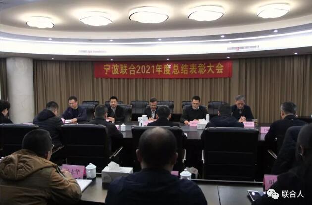 2022年1月28日下午,寧波聯合集團股份有限公司在會議室舉行2021年度總結表彰大會。公司總部全體員工、各(分)子公司和B類企業總經理助理級(含)以上管理人員、各(分)子公司工會、團(總)支部主要負責人、公司財務委派人員以及公司2021年度先進個人和先進集體代表以現場和通訊相結合的方式參加了總結表彰大會。公司領導王維和、戴曉峻、周兆惠、董慶慈、湯子俊、王彥梁、石志國出席會議,公司副總裁、黨委副書記戴曉峻主持了本次會議。