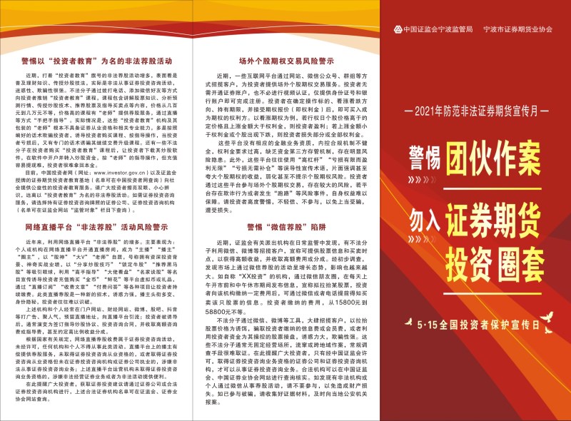警惕團伙作案 勿入證券期貨投資圈套